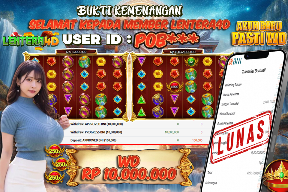 Satu lagi Bukti JP dan Pembarayan Sah Dan Dapat Dipertanggung Jawabkan, WD Berapapun Pasti Dibayar Lunas Hanya di Situs LENTERA 4D. Hati Hati Kepada Pihak Pihak Yang Mengatas namakan Pihak LENTERA4D Untuk Melakukan Penipuan.