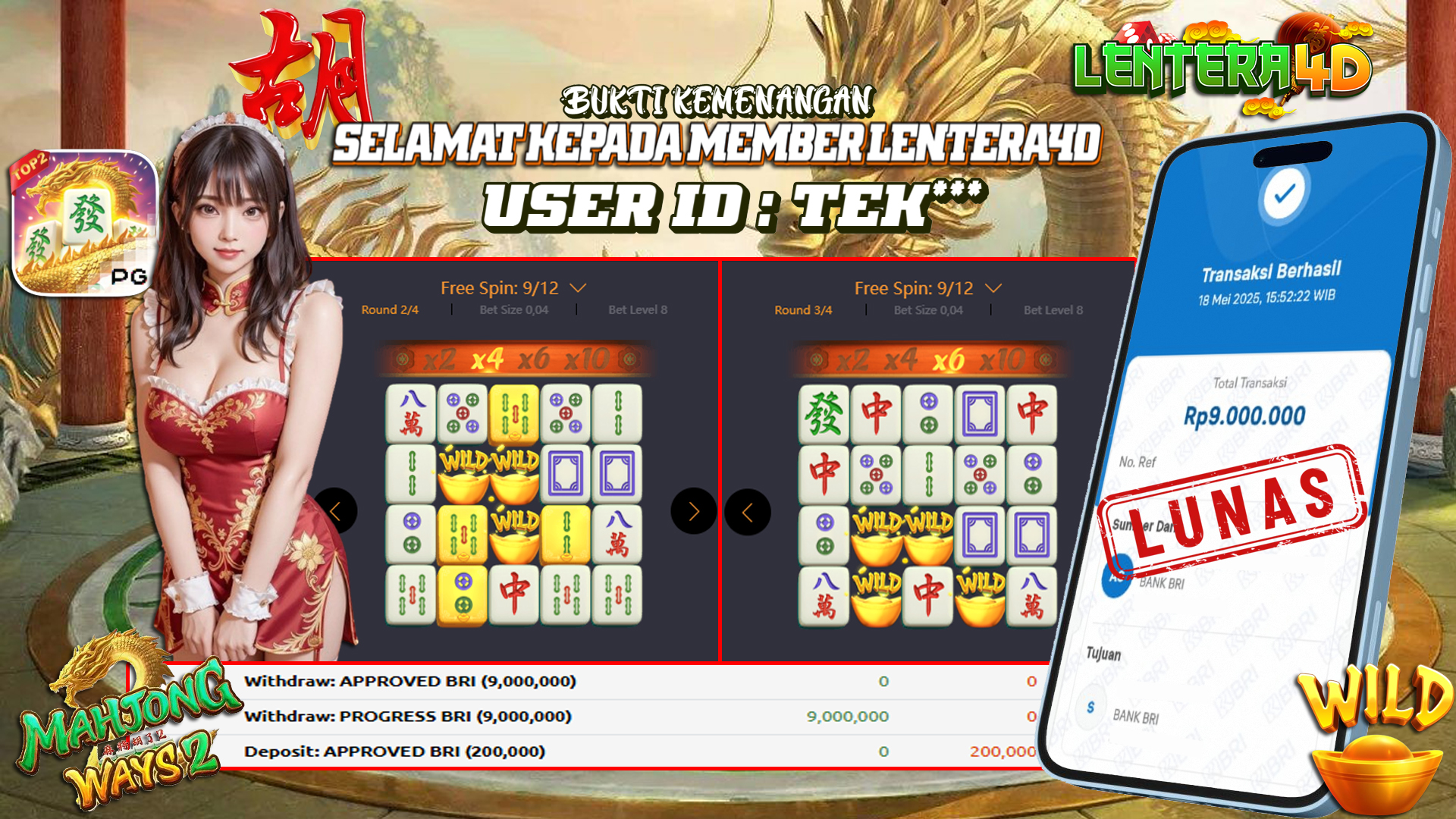 TOTAL KEMENANGAN : Rp 9.000.000,-
