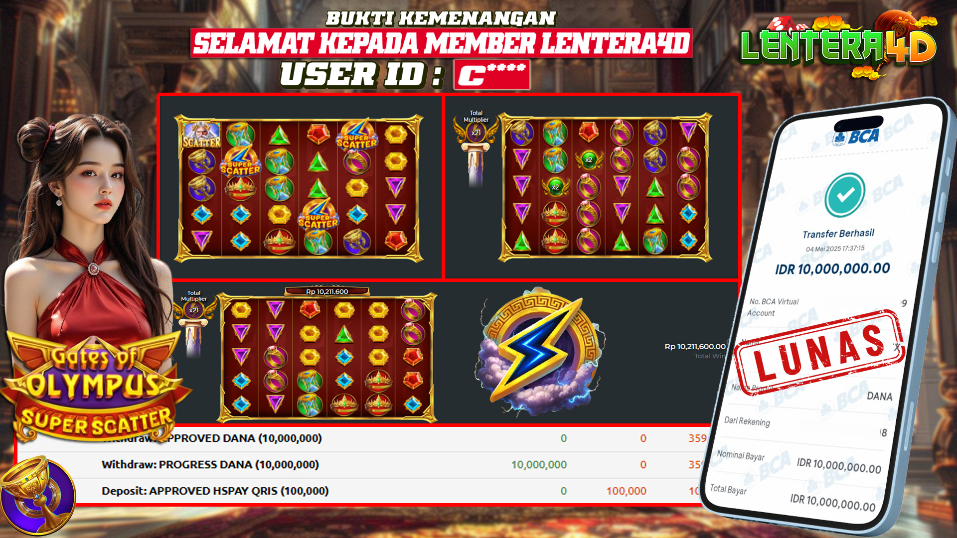 Satu lagi Bukti JP dan Pembarayan Sah Dan Dapat Dipertanggung Jawabkan, WD Berapapun Pasti Dibayar Lunas Hanya di Situs LENTERA 4D. Hati Hati Kepada Pihak Pihak Yang Mengatas namakan Pihak LENTERA4D Untuk Melakukan Penipuan.