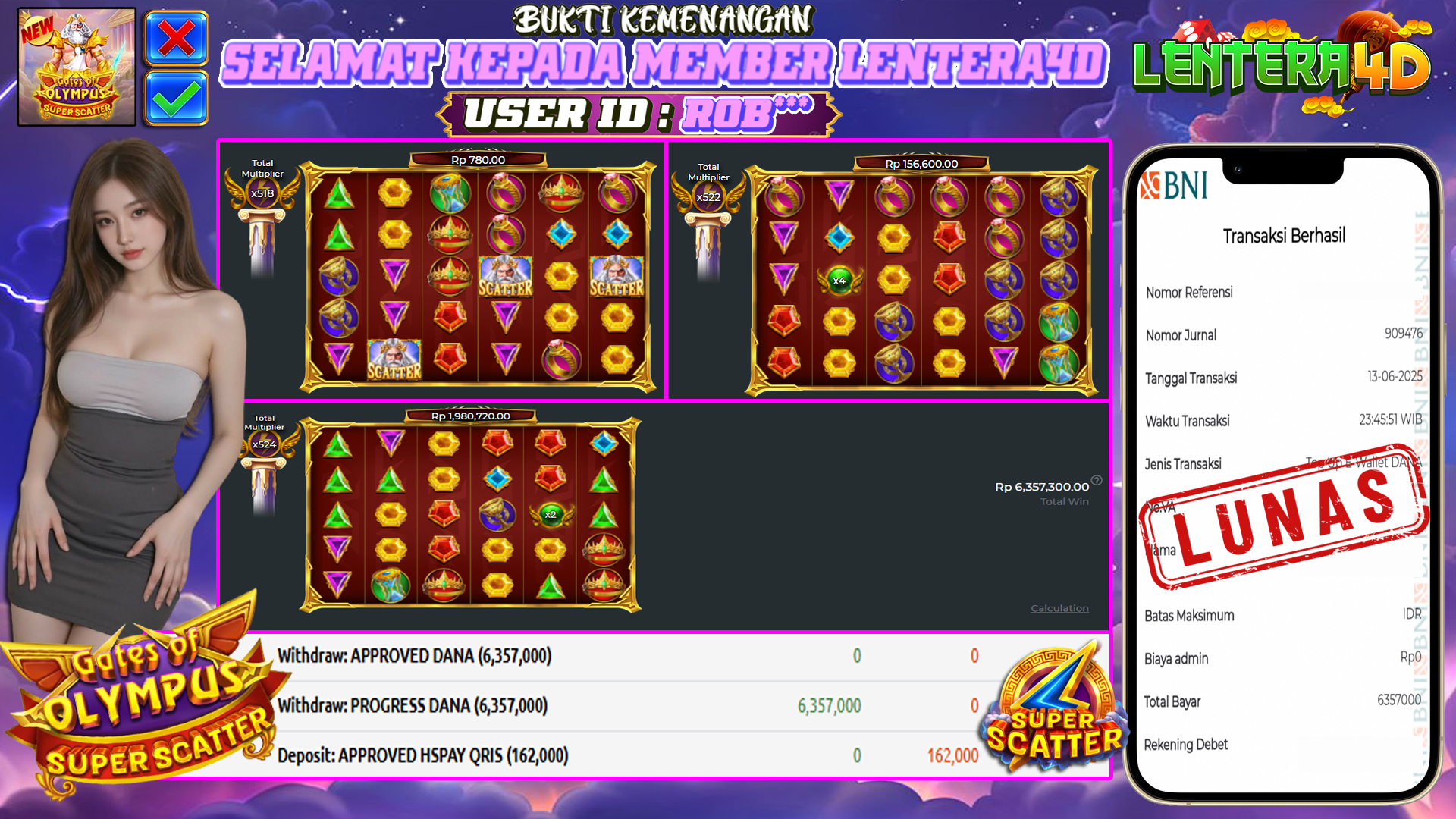 JACKPOT OLYMPUS SUPER SCATTER 13 JUNE 2025, Jackpot Slot Gacor, Kemenangan Slot, Bukti Kemenangan Slot, Kemenangan Slot PRAGMATIC PLAY, Menang Slot online, Slot Gacor, Situs Aman Terpercaya, WD Berapapun Pasti DI Bayar Tuntas, Maxwin Slot Online.