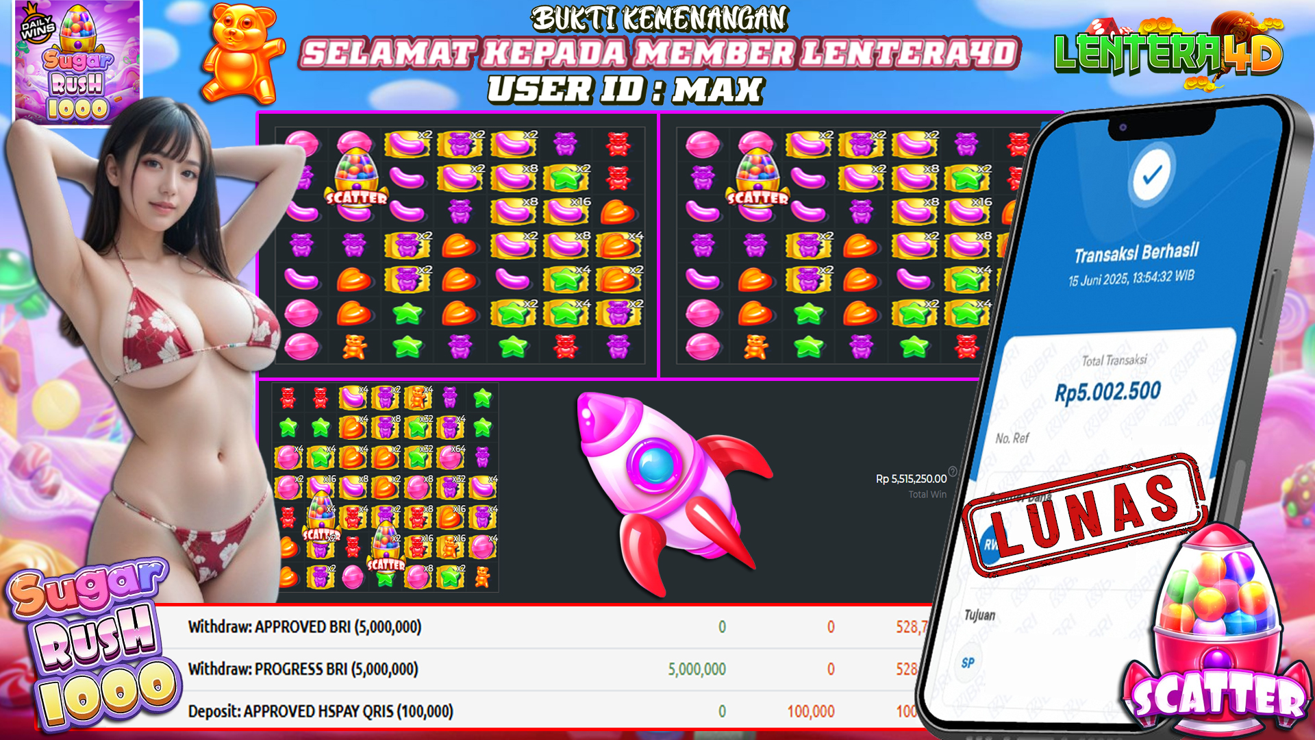 JACKPOT SUGAR RUSH 1000 20 JUNE 2025, Jackpot Slot Gacor, Kemenangan Slot, Bukti Kemenangan Slot, Kemenangan Slot Pragmatic Play, Menang Slot online, Slot Gacor, Situs Aman Terpercaya, WD Berapapun Pasti DI Bayar Tuntas, Maxwin Slot Online.